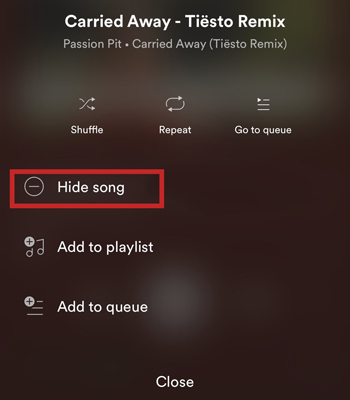 ステップ 2. 次に、「Hide song」オプションをタップします。